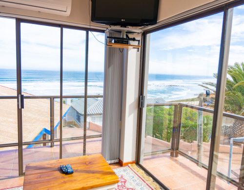 A three-star bachelor flat on the first floor with a full kitchenette, double bed, excellent 180° sea view, air conditioning and DStv satellite connection available. The Jean 2 flatlet is on ground floor below and can conveniently extend Jean 1.